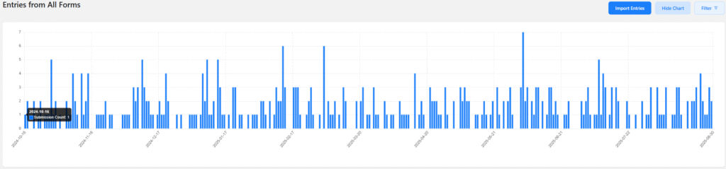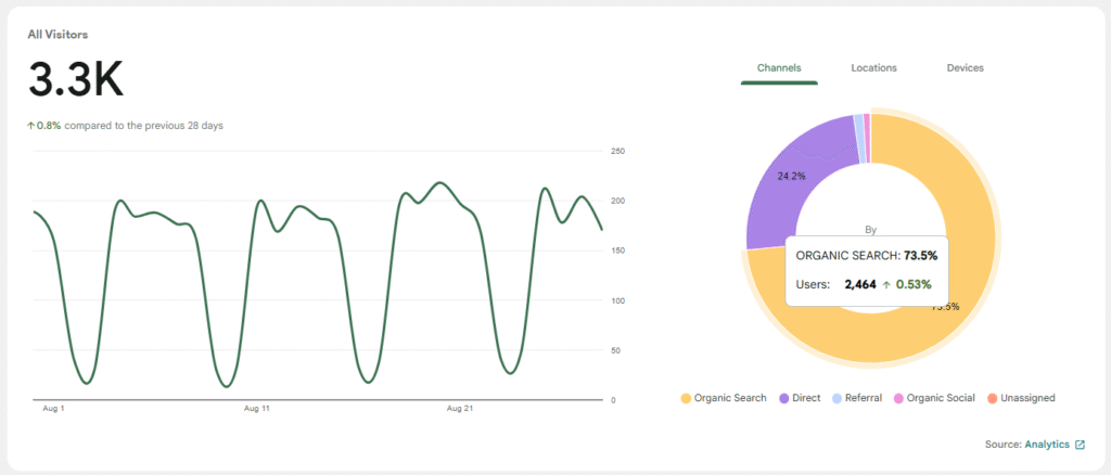 El sitio se lanzó a inicios de septiembre de 2024, hace ya casi un año y durante los últimos 10 meses ha promediado unas 3000 visitas por mes y más de 35 agendas mensuales, con más del 70% del tráfico viniendo de la búsqueda de Google.