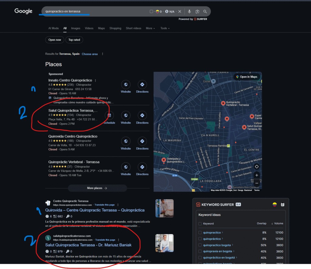 Actualmente la página está de #2 en Google para la palabra clave “quiropractico en terrassa”